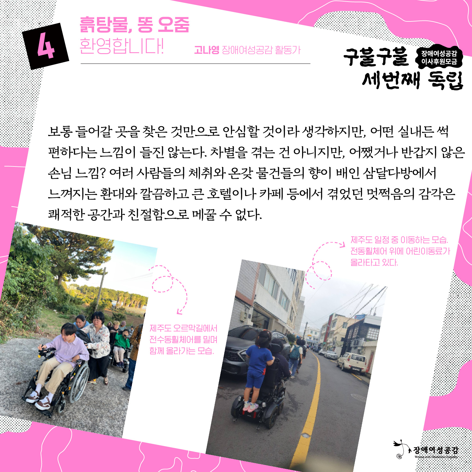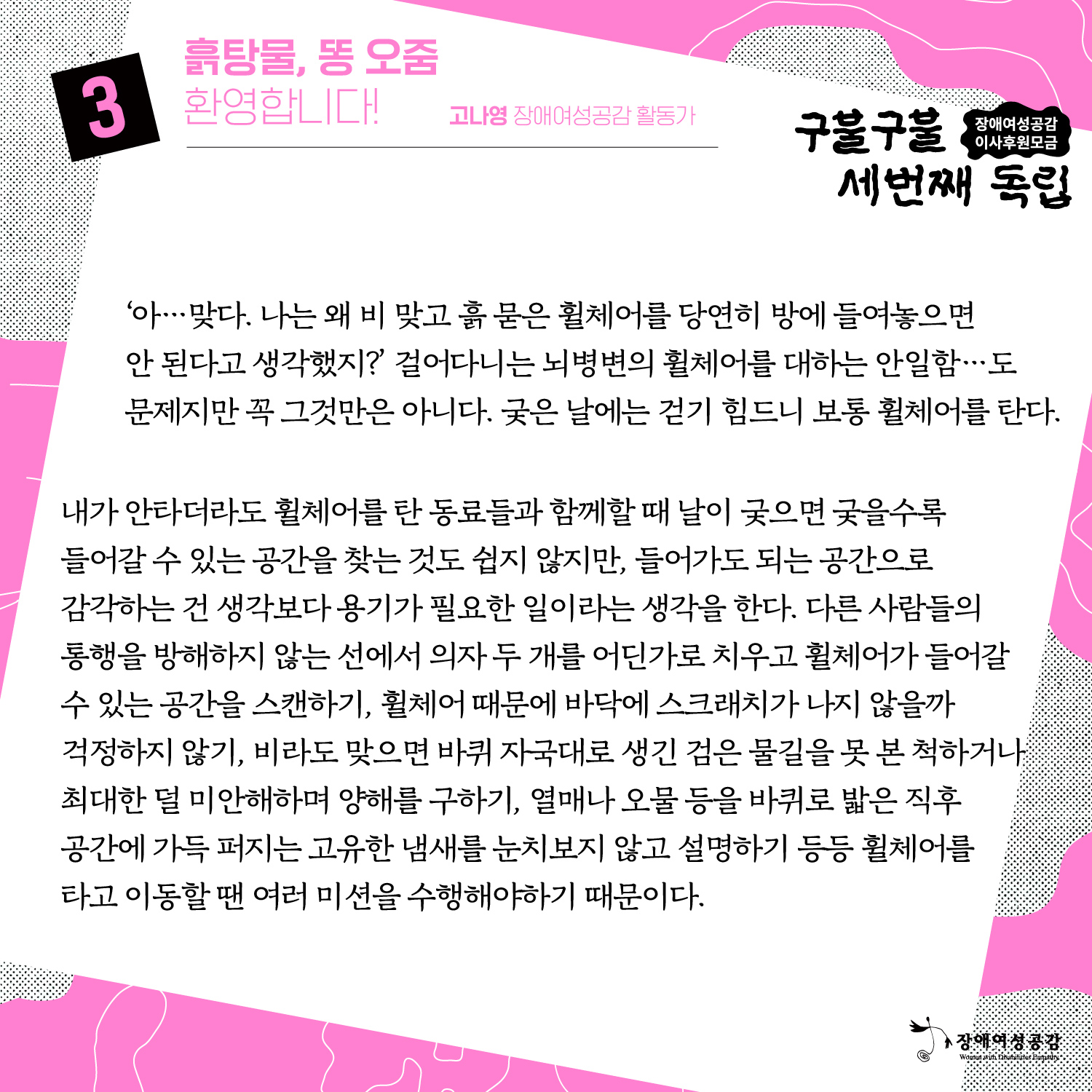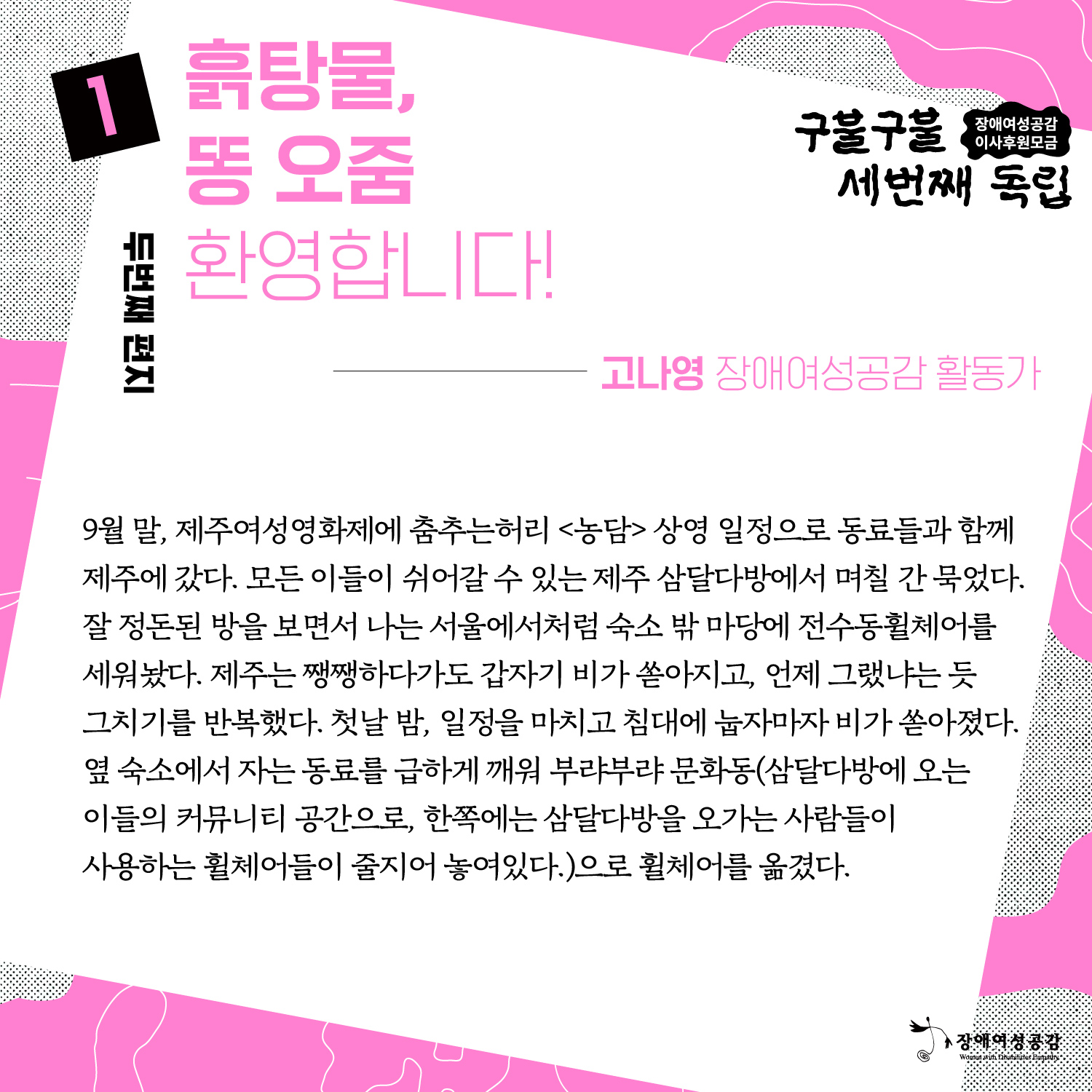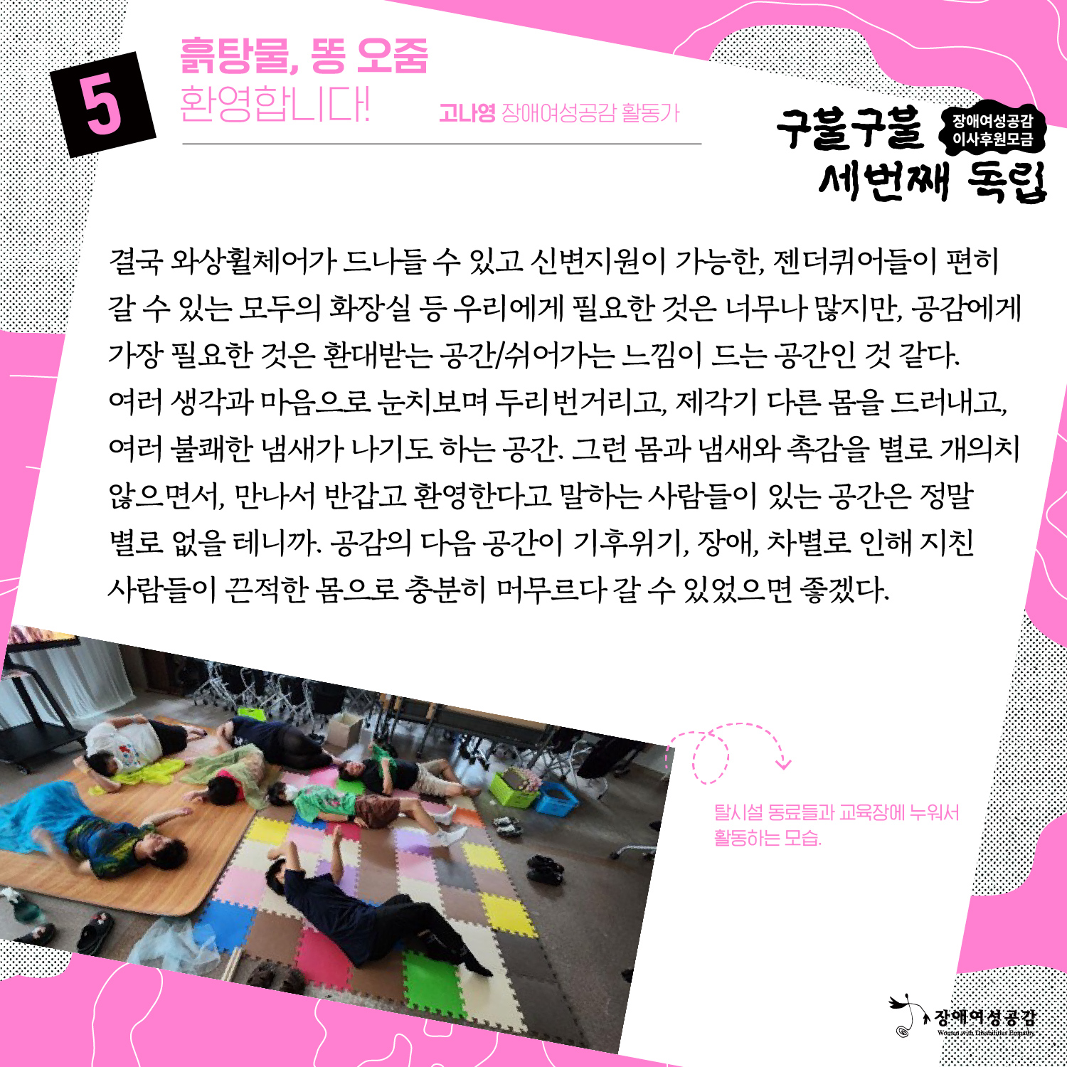 장애여성공감 세 번째 독립, 이사 후원 모금_ 흙탕물, 똥 오줌 환영합니다! 고나영 활동가