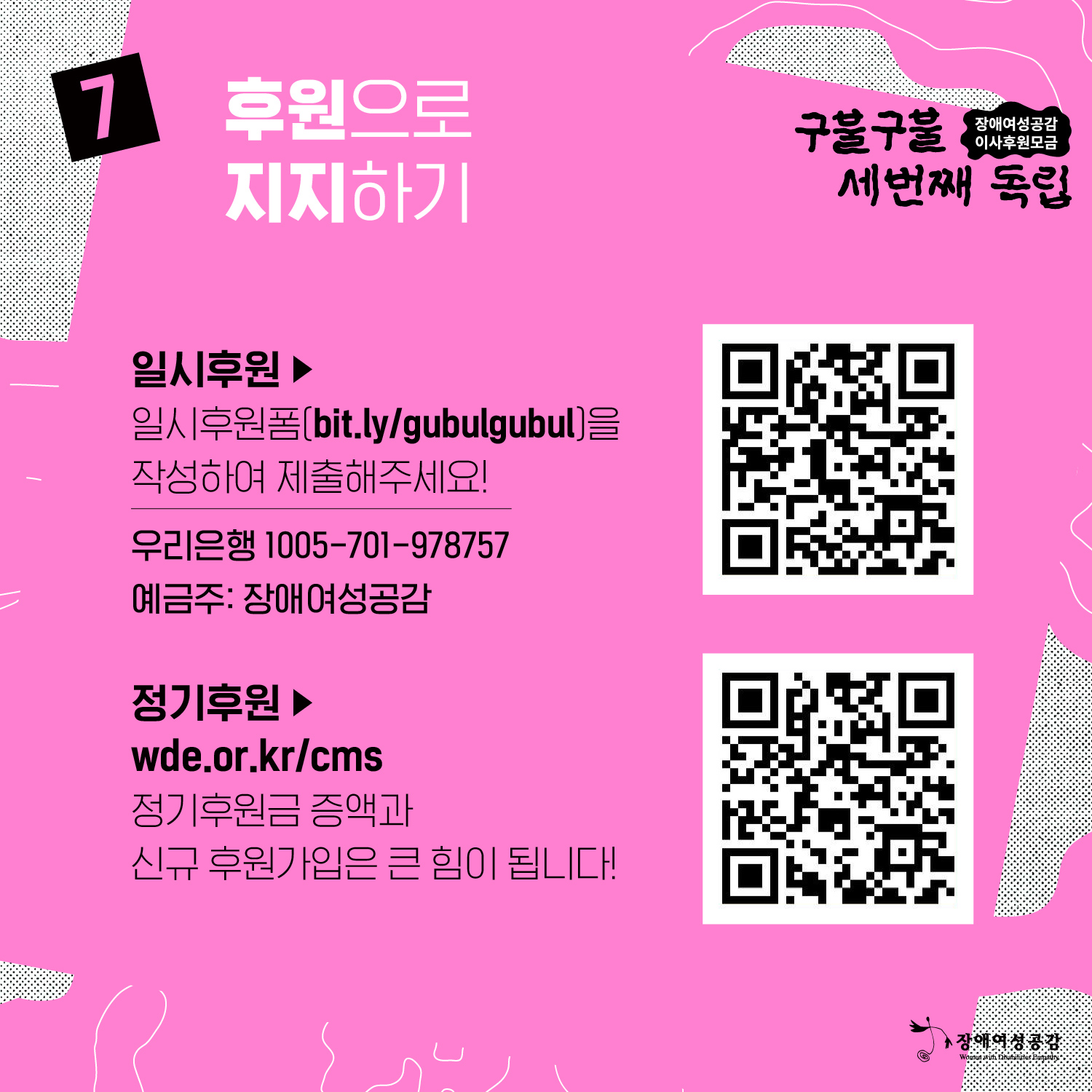 – 우리은행 1005-701-978757 / 예금주: 장애여성공감