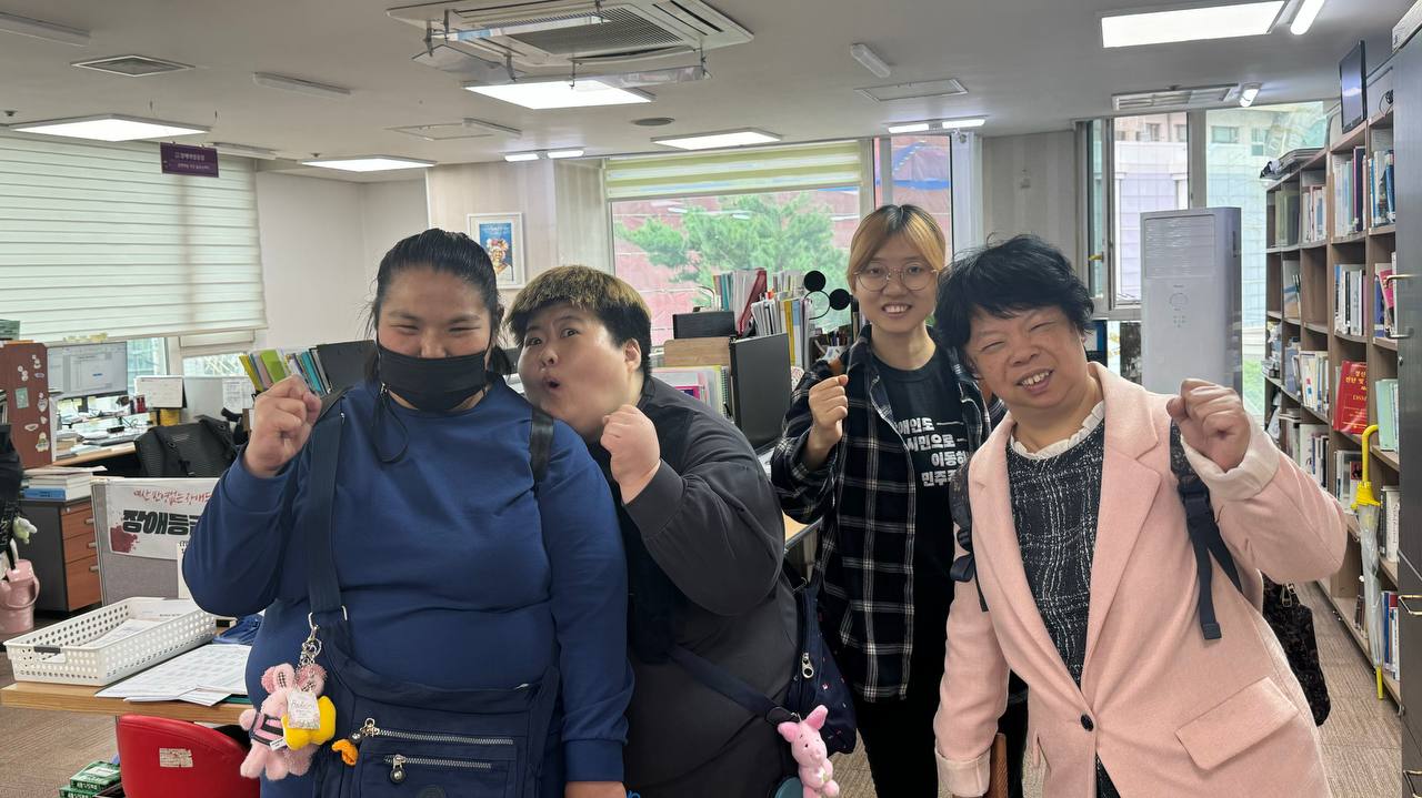 천호동 공감 사무실에서 김상미, 백현정, 서주영, 조화영이 나란히 웃고 있는 사진.