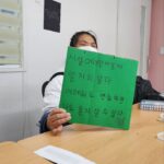 [사진 6] 글을 쓰고 있는 백현정 회원의 모습.