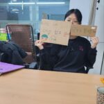 [사진 7] 김상미 회원이 찍은 천호동 회원방에서 피켓을 만드는 서주영 회원의 모습.