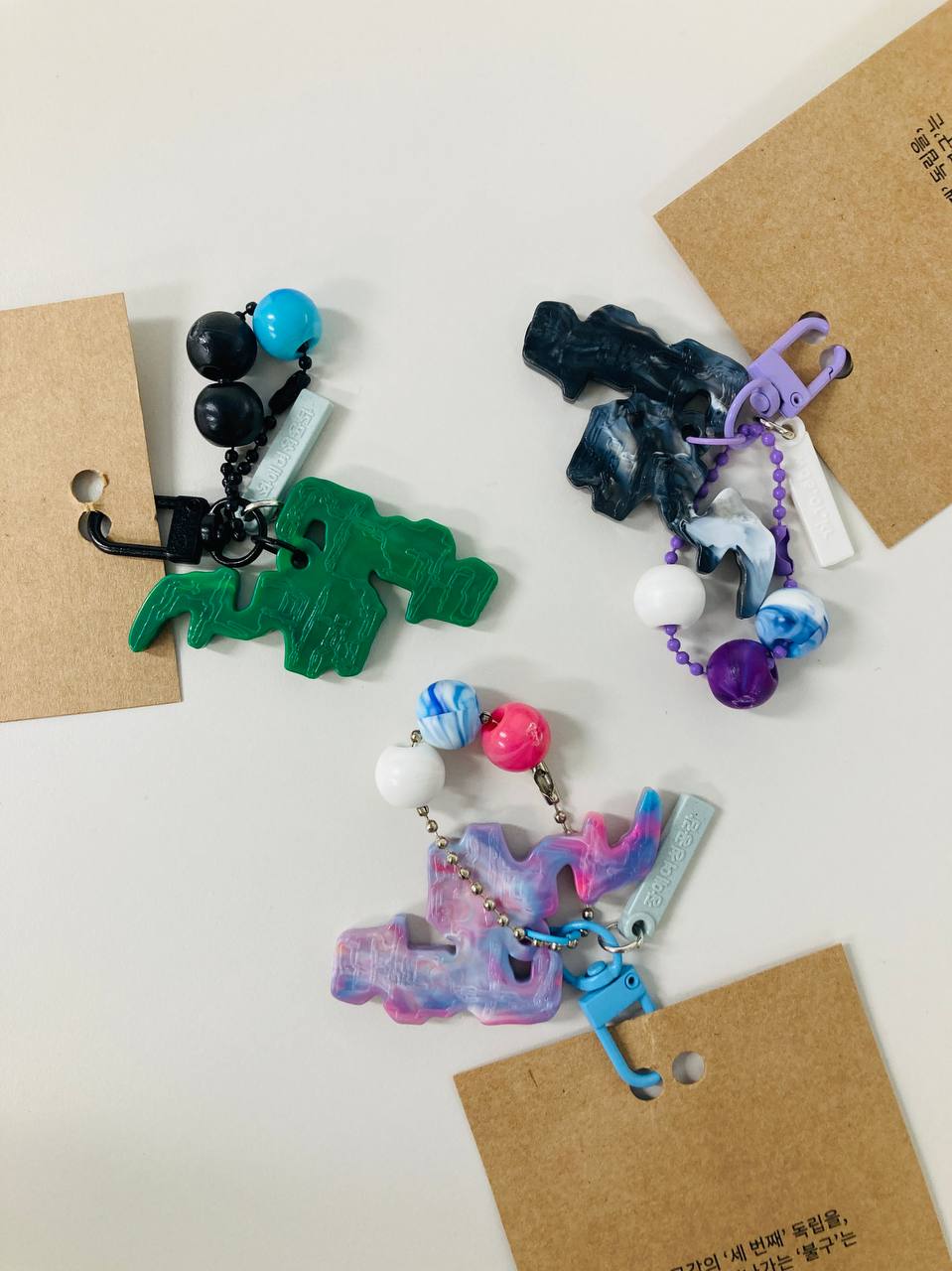 <키링 실물> 왼쪽 위부터 오른쪽 방향으로 기본버전, 흰/검버전, 트랜스젠더 버전